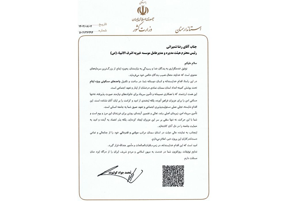 لوح سپاس فرماندار سمنان
