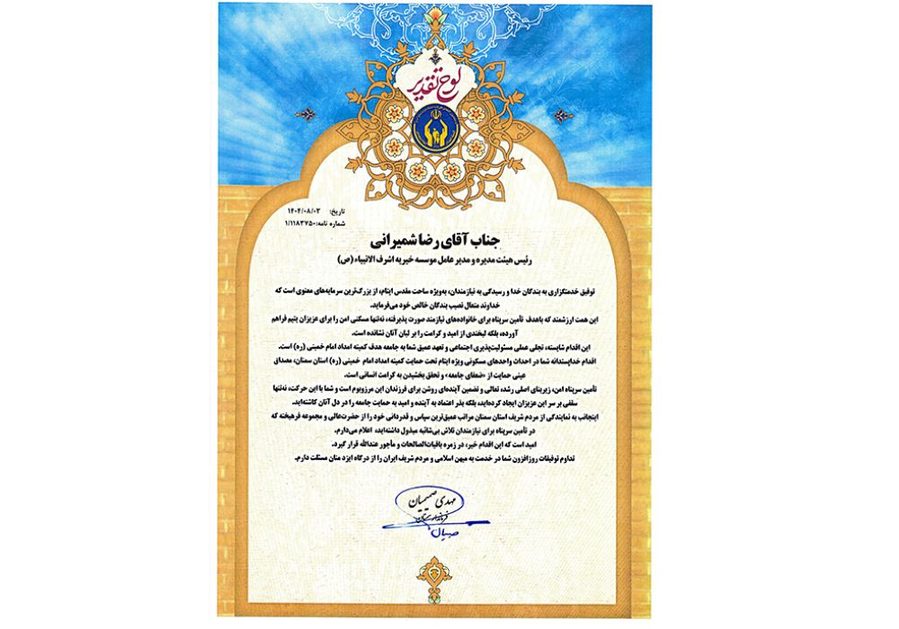 لوح سپاس معاون استاندار و فرماندار ویژه شهرستان شاهرود